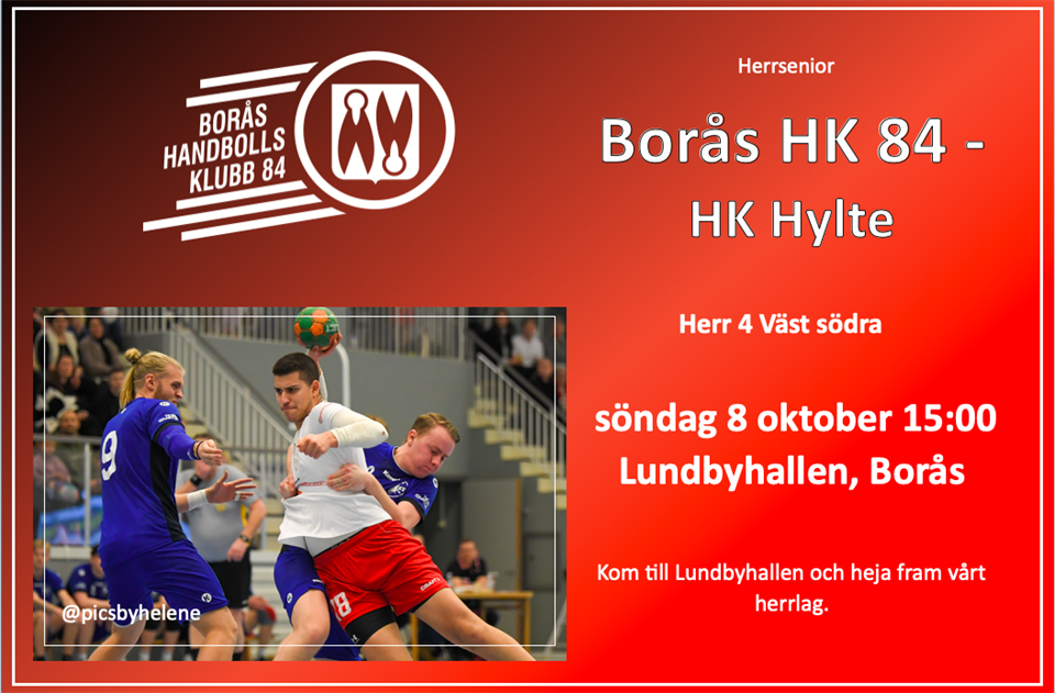 Handboll i Lundbyhallen under helgen. Det kommer finnas möjlighet att kolla på härlig handboll och kanske till och med köpa en god kopp kaffe med tilltugg i pausen. Hemmamatcher Lördag 7 oktober 10:00 Borås HK84 F14 - Anderstorps SK 13:00 Borås HK84 F14 - Alingsås HK Söndag 8 oktober 10:00 Borås HK84 F10 - HK Varberg 13:00 Borås HK84 F10 - Alingsås HK 15:00 Borås HK84 Herr - HK Hylte Bortamatcher Fredag 6 oktober 20:20 Borås HK84 Dam - Chalmers HK spelas i Valhallahallen, Göteborg Söndag 8 oktober 10:30 Borås HK84 F11 - Alingsås HK spelas i Nolhagahallen , Alingsås 13:50 Borås HK84 P10 - Kvibergs HK spelas i Kvibergs sporthall, Göteborg Kom och heja fram våra lag och titta på handboll. Borås HK 84 4 okt 2023 0kommentarer