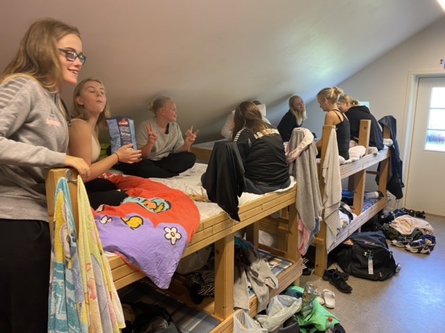 En dag där solen och regnet avlöst varandra fördriver tjejerna tiden med lite kortspel. Stafett i vattnet var lite småkallt men ganska roligt trots allt. Nu står middag och lite prisutdelning på programmet.